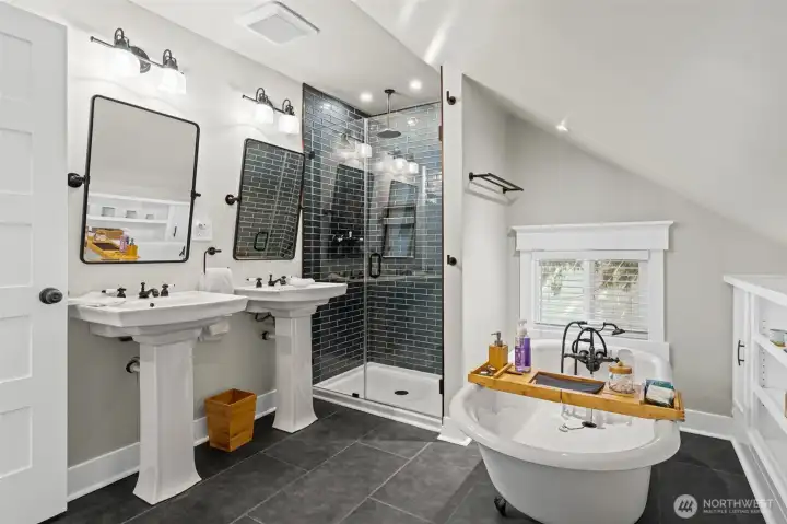 Proudly presenting this beautifully updated Craftsman-style home that blends timeless character with modern comfort. Thoughtful renovations preserve the charm of the early 1900s while incorporating stylish, modern finishes. The fully remodeled kitchen features slab countertops, brand-new appliances, and excellent functionality for everyday living. Hardwood tongue-and-groove flooring runs throughout the home, complemented by tastefully tiled bathrooms. The main floor includes a spacious primary bedroom, while upstairs offers two large bedrooms and a distinctive, beautifully designed bathroom. Major system updates include a new gas furnace and tankless hot water heater for efficiency and peace of mind. Curb appeal stands out with attractive landscaping, a brick retaining wall, new concrete walkway, and a welcoming covered front porch that makes a great first impression. With over 1,400 square feet, 3 bedrooms, and 2 bathrooms, this home offers a comfortable and well-designed layout. The fully fenced backyard features a deck for outdoor enjoyment, a custom storage shed/workshop, and convenient alley access with off-street parking for up to four vehicles. Plenty of space remains for a future detached garage or potential ADU. Move-in ready and sure to generate strong interest.