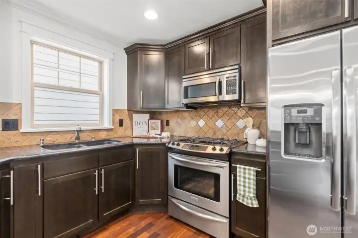 Welcome to the home you've been waiting for! NO HOA and garage parking that will fit a real car. Impeccable construction with high end finishes and an unmatched location. This bright and airy 3-bedroom, 3.5 bath townhome combines modern comfort with neighborhood charm. Step into this sun-filled open floor plan featuring gleaming hardwood floors, high ceilings, and a cozy living space perfect for both relaxing and entertaining. The chef's kitchen boasts sleek granite slab countertops, real wood shaker cabinets, stainless steel appliances , two pantries and a custom tile backsplash. Upstairs, the spacious primary suite offers a tranquil retreat with a large wall to wall closet and a private bath ensuite. Two additional well appointed bedrooms provide plenty of flexibility for guests, or home office. Enjoy morning coffee or dining al fresco on your private fully fenced patio ( two additional balconies!) and take advantage of your own attached garage. Storage galore in the large closet space including a built in storage entry bench. Fresh high quality interior paint is an added bonus! You're just moments from vibrant local shops, cafes, grocery stores, parks, and the heart of Ballard. All you have left to do is move in, welcome home! Pre inspected, NO HOA and No sewer capacity charge! Don't miss this one.