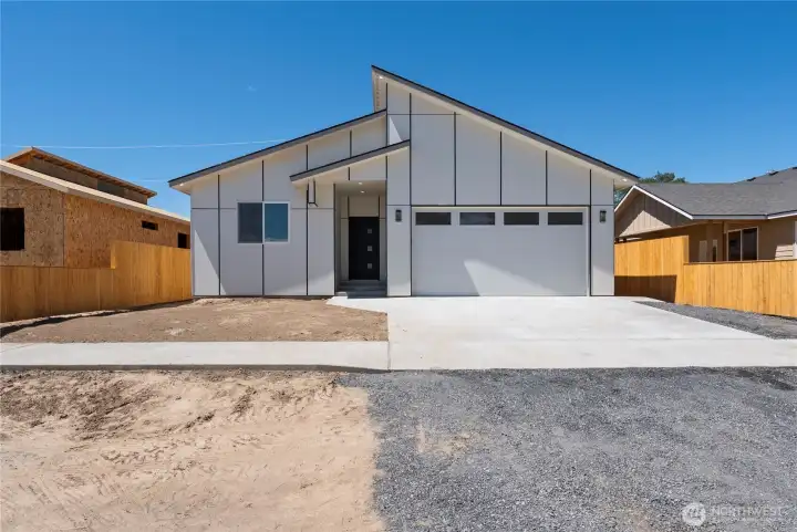 Modern 3 Bedroom 3 Bath New Construction Move-In Ready. Located in a growing neighborhood near the unique and historic “healing” waters of Soap Lake, this beautifully designed home offers nearly 1,500 sq. ft. of thoughtfully planned living space. The open-concept layout creates a seamless flow between the kitchen, dining, and living areas—ideal for everyday living and easy entertaining. The kitchen is both stylish and functional, featuring quartz countertops, durable tile and LVP flooring, matte black hardware, and sleek custom cabinetry that gives the space a clean, modern edge. Quality finishes and curated details carry throughout the home, creating a cohesive and elevated feel. The spacious primary suite offers a private retreat with heated bathroom floors, designer lighting, and a beautifully tiled tub/shower combination. Two additional bedrooms and a full bath provide flexibility for guests, a home office, or hobbies. Step outside to a fully fenced yard and covered patio—perfect for relaxing evenings, weekend BBQs, or enjoying the peaceful surroundings. With modern finishes, practical design, and close proximity to Soap Lake’s well-known mineral waters and small-town charm, this home is ready for its next chapter.