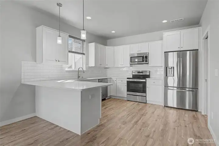 Welcome to this beautifully maintained 3-bedroom, 2-bathroom home offering 1,499 square feet of comfortable, move-in ready living. Built in 2021 and lovingly cared for, this home feels like new and features durable luxury vinyl plank flooring throughout the main living areas for both style and easy maintenance. The kitchen is a standout, featuring gorgeous quartz countertops, a convenient extra bar cabinet for entertaining or additional storage, and an open layout that flows seamlessly into the living and dining spaces. Step outside to enjoy the fully fenced corner lot, complete with a relaxing HOT TUB — ideal for unwinding year-round — and RV/BOAT Parking with a 12x16 SHOP/ Garage. Providing the perfect space for parking a car, projects, storage, or creative pursuits. With modern finishes, thoughtful upgrades, and a sense of pride of ownership throughout, this home truly checks all the boxes. Don’t miss your opportunity to own a like-new home that’s ready for you to move right in!