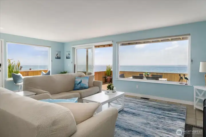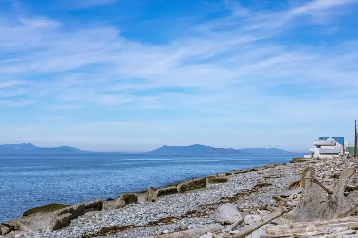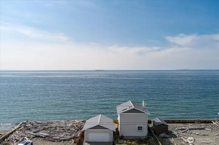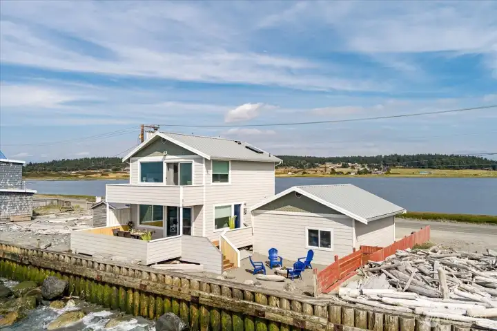 Heron House! Whidbey Island Waterfront Investment! Rare opportunity to own true sandy beachfront on the Island with panoramic views of the Olympic Mountains, San Juan Islands, and Vancouver Island. This light-filled coastal retreat offers open-concept living, a remodeled kitchen, spacious beachfront deck, 2 bedrooms, 1.5 baths, laundry, and an oversized detached garage provides ample storage for beach items. Designed for both comfort and income potential, the layout maximizes views and indoor-outdoor living—key features for strong vacation rental appeal. Direct beach access and wildlife sanctuary surroundings create the authentic Pacific Northwest experience, today’s buyers and renters seek limited waterfront inventory and consistent demand for short-term rentals in the area, this property can operate as a vacation rental, second home, or long-term stay. Heron House offers income potential, lifestyle value, and long-term appreciation in a highly desirable coastal market. This property is currently popular with short term rentals.