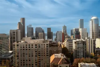 Elevated Luxury at First Hill Plaza. Experience the pinnacle of urban living in this sprawling 21st-floor residence. Positioned on the coveted southwest corner, this 3-bedroom home is bathed in natural light from floor-to-ceiling windows, offering panoramic views of the Seattle skyline, Mt Rainier, the Olympics & the Cascades as well as plenty of wall space to showcase your art collection. The versatile floor plan offers the perfect balance of privacy and togetherness, perfect for entertaining. Retreat to a primary suite designed for tranquility, complete with ample closet space and a 5 piece bath. The two secondary bedrooms are ideal for guests and/or a sophisticated home office. The updated kitchen features newer S/S appliances and generous counters as well ample cabinets. Large storage and 2 parking spaces are included. FHP is noted for its top tier amenities: 24/7 concierge, tennis/pickleball court, indoor rooftop pool, gym, hospitality & guest suites, outdoor jacuzzi & beautiful courtyard. The updated lobby & Port a cochere will be finished this spring. Live at the intersection of First Hill’s historic charm and the modern energy of Downtown.