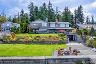 Discover an extraordinary waterfront retreat on Erlands Point, offering 4,009 square feet of thoughtfully designed living space with panoramic views and exceptional amenities. This stunning 3-bedroom residence + dedicated office features 4 bathrooms and an ideal layout for both everyday comfort and elegant entertaining. Walls of windows frame captivating water views, filling the home with natural light and bringing the beauty of the Pacific Northwest indoors. The spacious primary suite provides a private sanctuary meant for relaxing. Step into the cedar sauna and let the day melt away. Designed for seamless indoor-outdoor living, the expansive patio creates the perfect setting for hosting gatherings, enjoying sunsets, or simply relaxing to the sounds of the water. Mooring buoy, basement boathouse and boat ramp offer rare and convenient waterfront access—ideal for boating enthusiasts and those seeking an authentic shoreline lifestyle. Collectors, hobbyists, and adventurers will appreciate the oversized shop, attached 2-car garage, and abundant storage throughout. Whether you're looking for a full-time residence or a luxury waterfront getaway, this exceptional property delivers space, privacy, and breathtaking surroundings in one of Kitsap County’s most desirable waterfront settings. Experience the best of waterfront living on Erlands Point—where views, versatility, and lifestyle come together. Amazing location with convenient access to Seattle Ferries and HWY 16.
