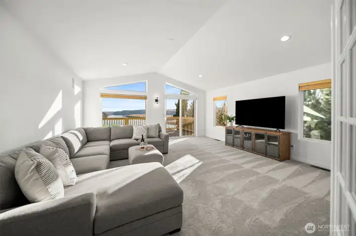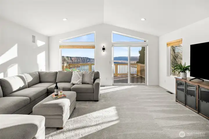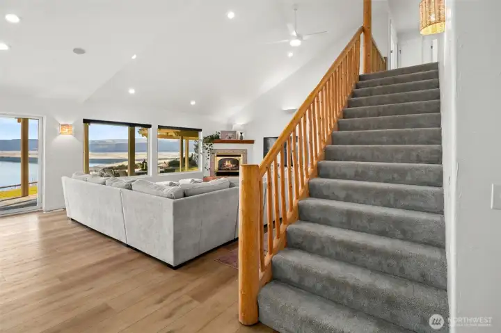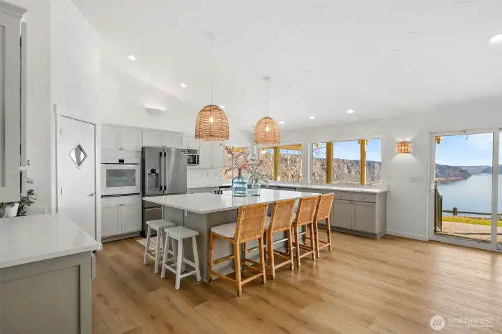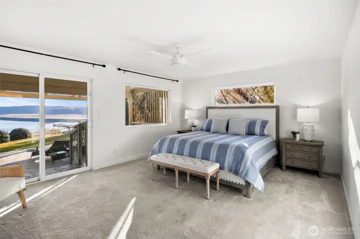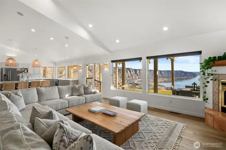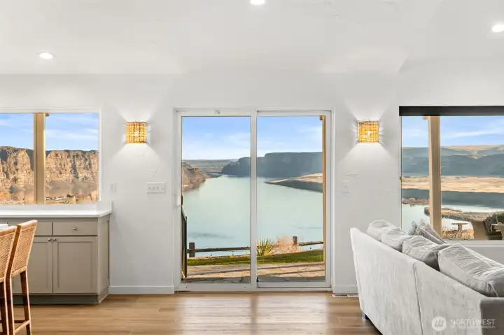 Imagine waking each morning to sunlight dancing across the water, boats gliding below, and endless sky stretching beyond. A truly once-in-a-lifetime opportunity to own one of only nine homes perched on Crescent Bar’s highest bench commanding unobstructed views looking straight down the Columbia River! No other view compares. Set on a shy acre, this 2,853 sq ft retreat blends comfort with unforgettable scenery. The vaulted Great Room & expansive Kitchen are wrapped in south-facing windows, creating seamless indoor-outdoor connection. Main floor Primary Suite walks out to expansive flagstone patio. Main floor 4th Bedroom or Home Office. Upstairs, two additional Bedrooms, a full Bath & Bonus Room w view deck provide space for guests, recreation, or retreat. Fully finished & heated detached garage (32'd x 48'w) w room for multiple boats, work bench & more! Welcoming circular driveway makes it seamless to maneuver large boats, trailers & offers parking for 15+. Enjoy manicured grounds that bloom in all seasons. Backyard faces south so you avoid scorching westerly heat Sunserra and others deal w every afternoon. Wait until you see the cliffs light up during golden hour! Remodel includes: all new flooring, slab quartz counters, interior paint, millwork, lighting, front door, fridge, micro, DW, disposal, W/D, toilets, sinks & more. An irreplaceable vantage point. A legacy property. This is more than a home, it’s a front-row seat to the Columbia. No HOA!