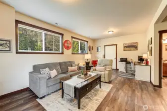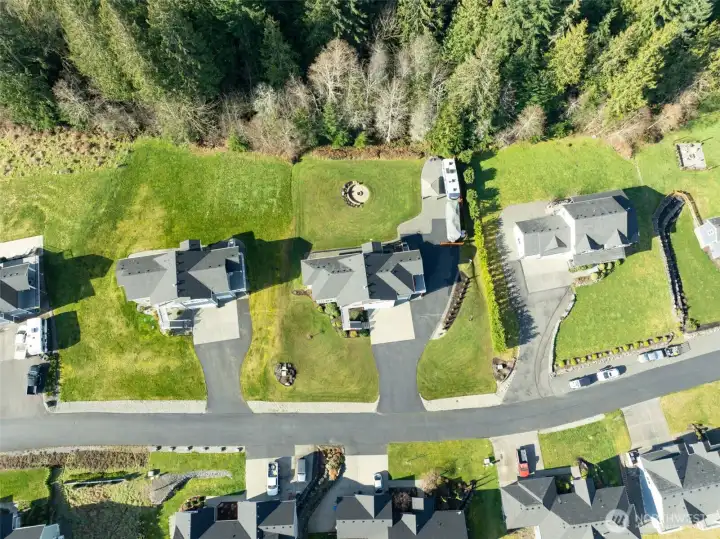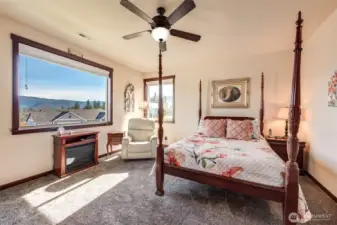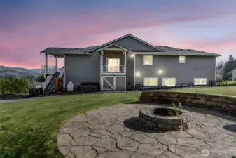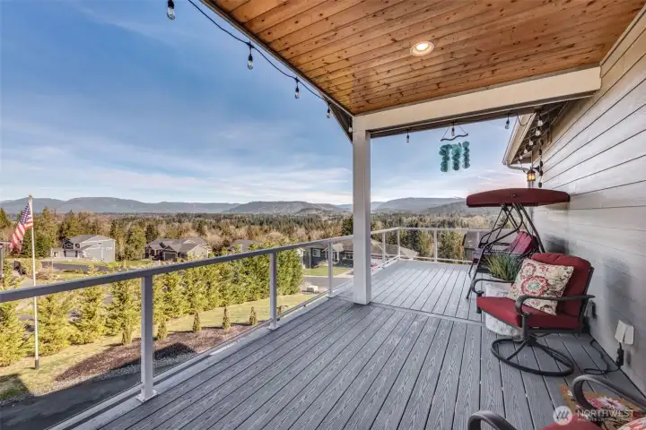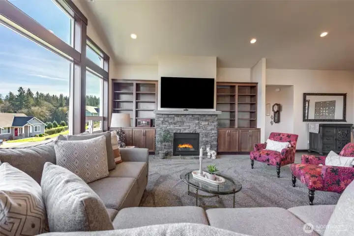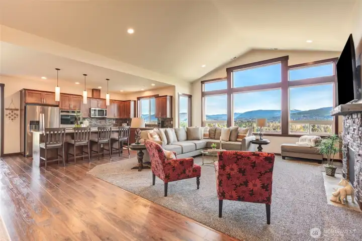 INCREDIBLE MOUNTAIN & VALLEY VIEWS welcome you the moment you step inside. A dramatic wall of windows showcases sweeping scenery. Soaring 13-foot vaulted ceilings and hand-troweled finishes enhance the bright, open feel. Designed for both formal and casual living, the open layout seamlessly blends the dining, living and kitchen into one expansive gathering space anchored by a stunning stone fireplace with custom built-ins. Kitchen features quartz countertops, double ovens and walk-in pantry. The primary suite offers a private retreat with en-suite bath and large walk-in closet. The lower level features two additional bedrooms, full bathroom and a spacious family room perfect for guests, multi-generational living or a private retreat downstairs. Enjoy true Pacific Northwest living on an estate-sized lot of over half an acre with a peaceful greenbelt backdrop. Multiple covered outdoor spaces include expansive covered decks—perfect for morning coffee or gatherings. A fire pit, hot tub and gazebo create spaces for relaxing evenings. The nearly 900-square-foot three-car, two-story garage offers impressive overhead space, plus RV parking and a large asphalt driveway. A/C heat pump for year-round comfort. Located in the desirable Eagle Springs community in Arlington enjoy small-town charm, convenient access to shopping, dining and commuting—while coming home to peaceful views and room to breathe. A rare opportunity to own a home that blends views, space, craftsmanship and lifestyle.