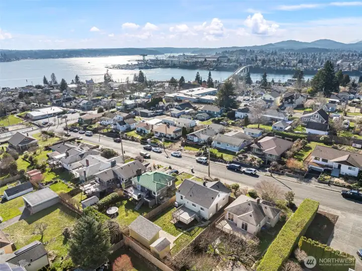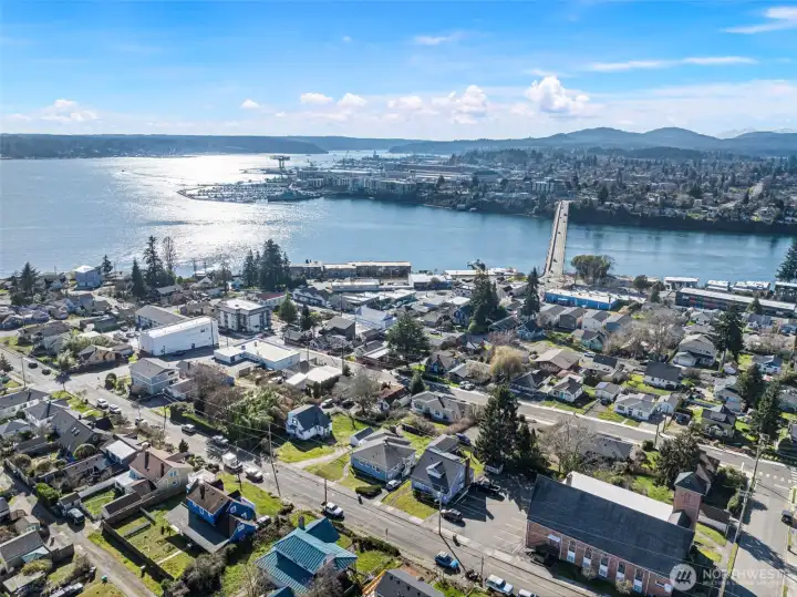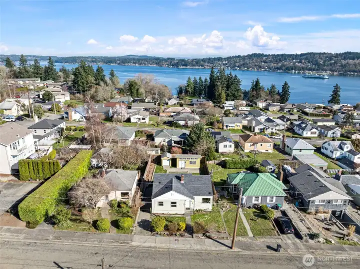 How do you know someone lives in Manette? Don’t worry… they’ll tell you. And honestly, who can blame them? Welcome to this 3 bedroom, 1.75 bath home in the heart of sought-after Manette is much larger than it appears! Where classic character meets PNW lifestyle. Inside, you’ll appreciate the timeless details that make homes like this so special, including plaster walls, arched entryways, and beautiful hardwood floors that add warmth and personality throughout. The roomy kitchen features tons of countertop space, plenty of cabinets, room for everyone, and flows seamlessly into the dining area, creating an ideal setup for entertaining or cozy nights in. The primary bedroom is conveniently located on the main level with an adjoining 3/4 bath for easy living. A 2nd bedroom and full bath completes the main level. Upstairs, take in impressive sound views from the large 3rd bedroom. Downstairs, unfinished basement for tons of work space and storage. Enjoy watching ferries and sailboats glide across the sound from your spacious deck. Need extra space? The fully insulated 10x20 custom outbuilding is a rare bonus - perfect for a home office, gym, art studio, yoga space, ADU(?) or creative retreat. Located just around the corner from the park and only minutes to the ferry, PSNS, waterfront dining, and all that downtown Bremerton and Manette have to offer, this home delivers the best of location, charm, and lifestyle. Quiet, peaceful, and close to everything. Come check this cutie out!!