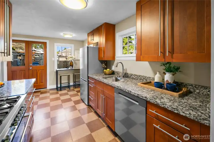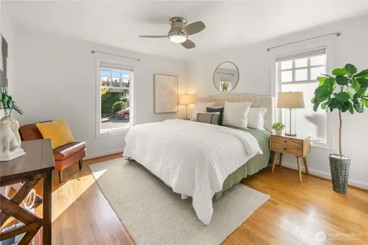 Welcome home to this charming two-bedroom Phinney Ridge cottage with an easy, functional layout and timeless appeal. Inside, the inviting living room features gleaming hardwood floors, a bright picture window, and a cozy fireplace, perfect for gathering or unwinding. The updated kitchen features solid wood cabinetry, granite countertops, and a quality gas range, with a practical design for daily life. Step outside to a level, fully fenced backyard with a patio and a generous deck just off the kitchen, ideal for dining, relaxing, and entertaining. Rounding it out is an oversized detached garage with great storage, plus an additional off-alley parking space. Set near Green Lake Park and Woodland Park Zoo, with the Greenwood/Phinney corridor close by for standout spots like Cornuto pizza, Prost! and Fortuna Italian sandwiches. A sweet Seattle classic, ready for its next chapter.