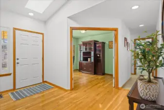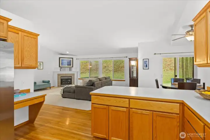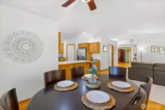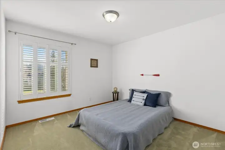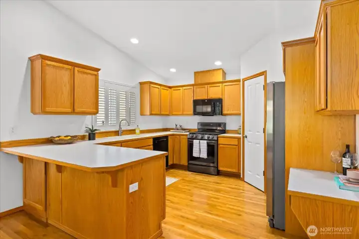 Welcome to the peaceful community of Cromwell Plateau! Original owners have impeccably maintained this 1856 SF rambler. The home is situated on a shy half acre lot, set back from the road w/territorial views of the Cascade foothills. The covered front porch welcomes you into an inviting living space w/gleaming hardwood floors, a skylight & den with French doors. Open concept boasts vaulted ceilings, gas fireplace, Berber carpet & plentiful windows. Light & bright kitchen to make any chef happy: gas stove, walk-in pantry, ample cabinet & counter space + counter seating. Large adjoining dining space w/ceiling fan & slider out to back deck, complete w/magnetic curtain screens. Generous primary suite w/plenty of room for king size bed, large walk-in closet &ceiling fan. Updated ensuite bath: dual sinks, separate vanity, jetted tub, walk-in shower w/rainfall head, radiant floor heating & remote opening skylight! Two add'l bedrooms w/large closets + full bath in hallway. Half bath & laundry accessible from great room or garage= functional & convenient! Plantation shutters t/o, tinted living room windows & slider, plus entry skylight has remote operated shade. Tankless H2O heater, A/C, 24 solar panels (PUD credit). On demand generator connects to propane! 3 car garage includes EV charger & overhead storage. Plenty of room for add'l parking. Backyard abuts wooded, undeveloped property offering privacy & tranquility. Property is fenced to the E&W. Turn-key home ready for new owners!