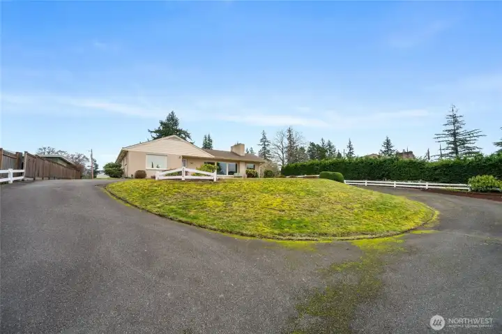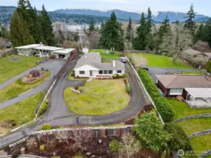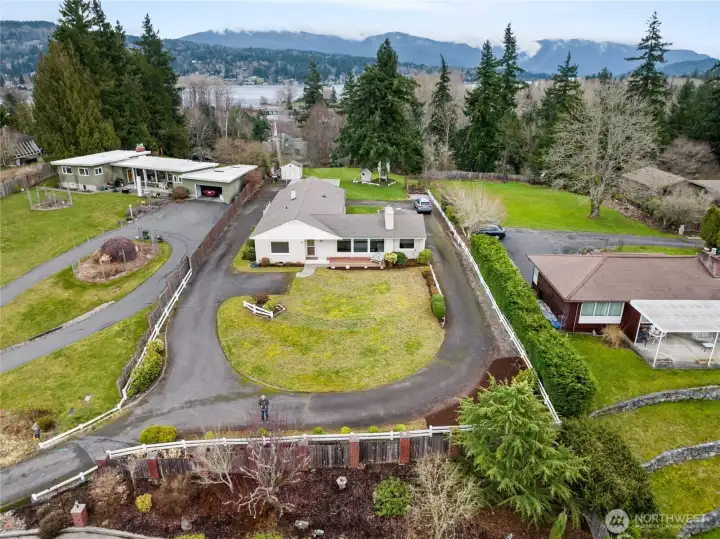 Enjoy views of Lake Whatcom and Bellingham Bay from this classic mid-century modern, spacious single-level home perched at the top of the hill in a quiet, established neighborhood. Set on an expansive 32,670 sq ft lot (RS7.2 zoning), the property offers exceptional space, privacy, and flexibility rarely found this close to town. The circular driveway creates a welcoming approach and provides abundant parking, complemented by a 2-car garage and carport for added convenience. Mature trees and established landscaping enhance the peaceful setting, while a level, sunny seating area near the gazebo offers the perfect spot to relax or entertain outdoors. The generous yard provides room for gardening, recreation, or future possibilities. Inside, you'll find large bedrooms, abundant natural light, and a functional floor plan designed for comfortable single-level living. Well maintained and move-in ready, the home also presents an opportunity to update and personalize over time. A rare chance to own a view property with space, privacy, and long-term potential.