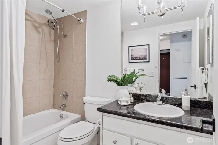 Rarely available generously sized 818 SF one-bedroom in sought-after Shalali Condos. This light and bright unit features a functional open floor plan with a cozy gas fireplace (gas included in HOA dues) and floor-to-ceiling windows showcasing spectacular, unobstructed west-facing views of the Space Needle, Seattle skyline, Lake Union, and the Olympic Mountains, along with amazing sunset views. The remodeled kitchen includes granite countertops, stainless steel appliances, and full height cabinetry. Fresh paint enhances the sun-drenched living space. The spacious bedroom easily fits a king-sized bed and offers a wall of floor-to-ceiling closet space and storage. In-unit washer/dryer, with additional full-sized laundry on each floor. Includes an assigned parking space on the same level as your unit (no stairs). Plenty of street parking on Melrose Ave E for guests or an additional vehicle. Well-run HOA, with dues covering gas, water, sewer, and more. Community sauna for relaxing. No rental cap and no special assessments. Prime location just blocks from eateries, shopping, parks, freeways, and transit, including light rail. Turnkey and move-in ready. Pet-friendly!