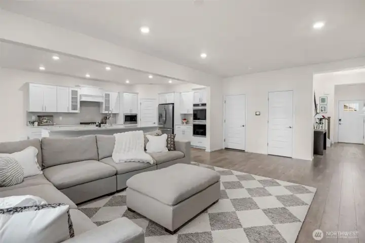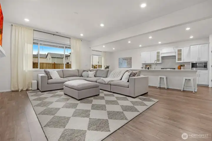 Welcome to this beautifully maintained home in the desirable Mountain Crest neighborhood in Lake Stevens. Built in 2022, this 4 bedroom, 2.5 bath home offers modern comfort, thoughtful upgrades, and a bright great room layout designed for everyday living and entertaining. The kitchen features quartz countertops, soft close cabinets and drawers, stainless steel appliances including a double oven, and a spacious walk in pantry. Expansive windows fill the home with natural light, while the gas fireplace creates a warm and inviting focal point. The interior has been freshly painted in a warm white, giving the home a clean and timeless feel. Upstairs you will find a versatile loft space and a spacious primary suite complete with a 5 piece en-suite bath and large walk in closet, both offering peekaboo mountain views. Three additional bedrooms and a full bathroom provide flexibility for guests, home office space, or hobbies. The upstairs utility room adds everyday convenience. Step outside to a fully fenced backyard featuring a covered patio with its own gas fireplace, perfect for year round entertaining. Additional highlights include a 2 car garage, central A/C, and a sprinkler system for easy yard maintenance. Located within the highly regarded Snohomish School District, this home blends newer construction with comfort, functionality, and a prime Lake Stevens location.