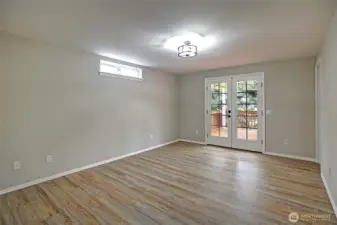 Welcome to your beautiful Lake House! This lake front daylight rambler features open concept living. Main level boasts open great room w/ propane FP, open kitchen w/French doors to large deck, primary bedroom w/ensuite, walk in closet & french doors to deck, a guest bedroom, full hall bath & laundry room. Basement level you'll find large open rec room w/free standing wood stove, french doors to patio, a bedroom or den/office, closet & french doors to patio, bathroom & space for wet bar. The large fenced backyard features private lake access, floating dock, fire pit & shed. Lake is electric motor only, trails, clubhouse & community park. A MUST SEE! Schedule your showing now!
