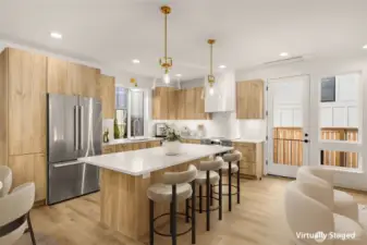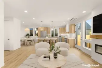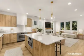 Experience exceptional new construction by Mirra Homes, where timeless design and meticulous craftsmanship come together in a thoughtfully curated floor plan tailored for refined living and effortless entertaining.The main level showcases an expansive open-concept layout with seamless flow between the living, dining, and designer kitchen featuring a generous island, Calacatta quartz countertops, custom Bellmont cabinetry, and Bosch appliances, including a 36” induction range. A dedicated wine and beverage center adds both style and convenience, making the space ideal for hosting, casual gatherings, or quiet evenings at home. The main-level primary suite offers a private retreat with a spa-inspired bath and generous walk-in closet, creating a sense of calm and comfort. A stylish powder room, dedicated mudroom, and inviting covered porch enhance everyday functionality.Upstairs, three additional bedrooms are thoughtfully positioned for privacy, with one offering flexibility as a versatile bonus room ideal for a media lounge, executive office, or guest retreat.A detached one-car garage plus an additional designated parking space, both EV-ready, provide modern convenience. Located just minutes from downtown Kirkland, waterfront parks, acclaimed dining, boutique shopping, and major commuter routes, this home blends elevated modern living with the charm of an established neighborhood.
