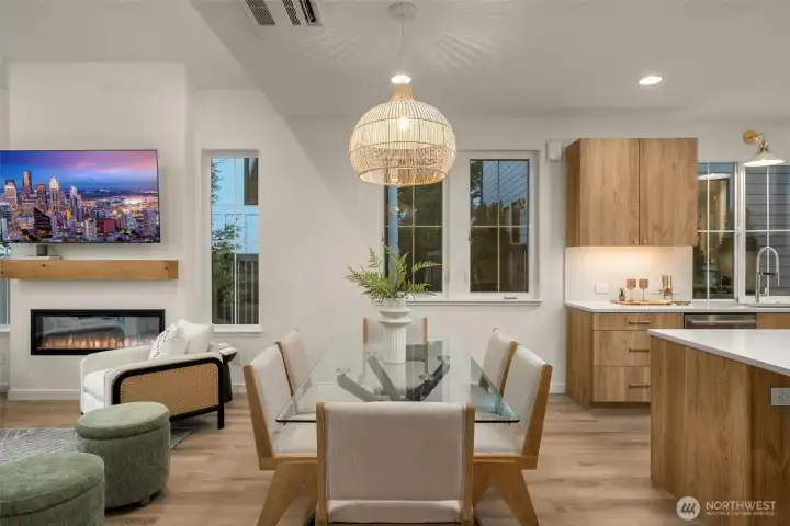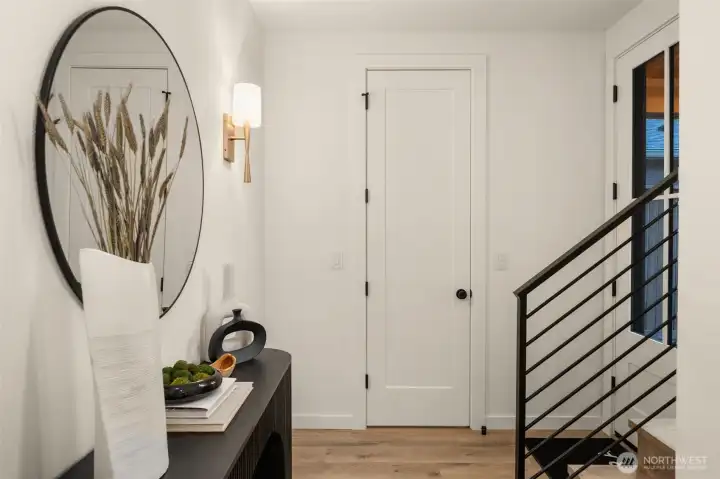 Experience exceptional new construction by Mirra Homes, where timeless design and meticulous craftsmanship come together in a thoughtfully curated floor plan tailored for refined living and effortless entertaining.The main level showcases an expansive open-concept layout with seamless flow between the living, dining, and designer kitchen featuring a generous island, Calacatta quartz countertops, custom Bellmont cabinetry, and Bosch appliances, including a 36” induction range. A dedicated wine and beverage center adds both style and convenience, making the space ideal for hosting, casual gatherings, or quiet evenings at home. The main-level primary suite offers a private retreat with a spa-inspired bath and generous walk-in closet, creating a sense of calm and comfort. A stylish powder room, dedicated mudroom, and inviting covered porch enhance everyday functionality.Upstairs, three additional bedrooms are thoughtfully positioned for privacy, with one offering flexibility as a versatile bonus room ideal for a media lounge, executive office, or guest retreat.A detached one-car garage plus an additional designated parking space, both EV-ready, provide modern convenience. Located just minutes from downtown Kirkland, waterfront parks, acclaimed dining, boutique shopping, and major commuter routes, this home blends elevated modern living with the charm of an established neighborhood.