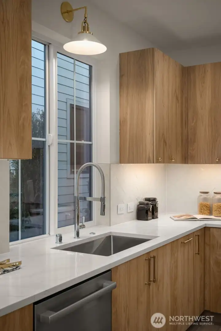 A kitchen designed to gather — generous island, custom cabinetry, and quartz counters.