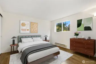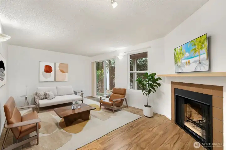 Why compromise on privacy, location or connection when you can have it all? Affordable garden level living is yours at Ballinger Creek, conveniently located just moments away from 2 light rail stations & all the modern conveniences. The open layout lives large & makes the most of every sqft, finished w/ new wood-style laminate floors, new lighting fixtures, a cozy wood-burning fireplace & all-new interior doors. Living areas are spacious & inviting w/ a full-size dining area & effortless flow into the galley-style kitchen, equipped w/ stainless steel appliances, granite counters & ample storage. There's plenty of room for a king-sized bed in the generously-sized bedroom, & dual closets ensure that everything has its place. Sip morning coffee on your private patio while overlooking tranquil green views. In-unit laundry, designated parking & no rental cap give you long-term investment flexibility. Start building equity in this park-like community & take advantage of living close to everything: dining, groceries, parks, schools, transit & freeways are all within reach.