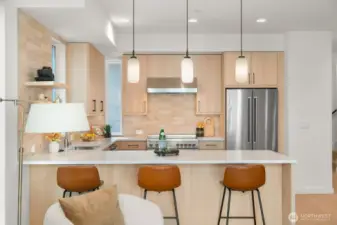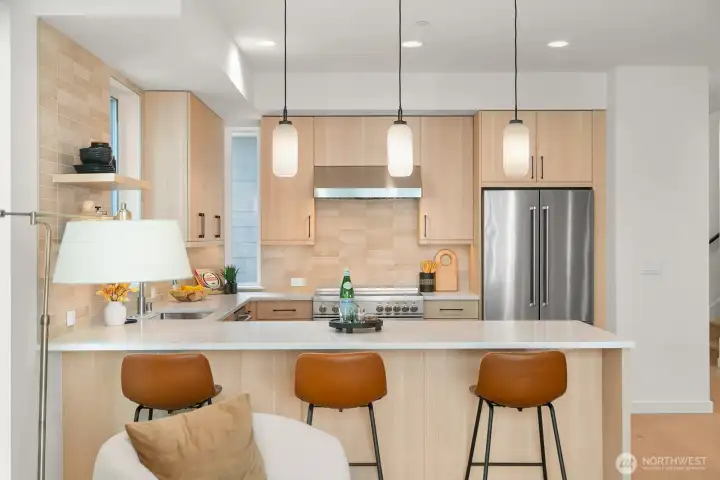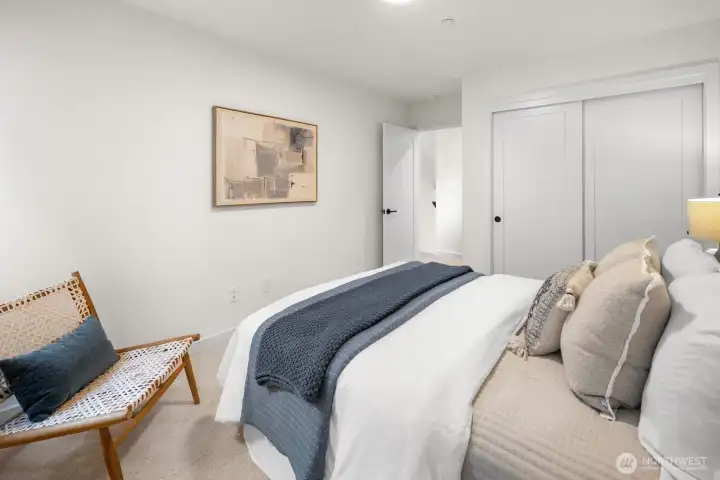 Brand-new construction in sought-after Sunset Hill, delivered by local builder Olsen Anderson. This 3,108 sq ft, 5-bedroom home is thoughtfully designed and well built—modern Seattle living in an established neighborhood where new construction is rare and in demand. A welcoming entry opens to bright, open living spaces with great natural light and easy flow for entertaining and holiday gatherings. The functional floorplan flexes for guests, a dedicated office, home theatre, fitness room, or the extra space you’ve been craving. Upstairs, generously sized bedrooms offer comfortable retreats and smart separation for everyday routines. Retreat to the primary suite, where vaulted ceilings set an airy tone, skylights brighten a dedicated reading lounge, and a spa-inspired bath creates a calming, end-of-day escape. A huge laundry room adds everyday ease. Designer-selected finishes, clean modern lines, and practical storage show craftsmanship in the details, with every square foot used intentionally—style and function with no wasted space. A large sliding door connects the main living area to the yard for play, pets, and summer lounging—your slice of outdoor space in coveted Sunset Hill.