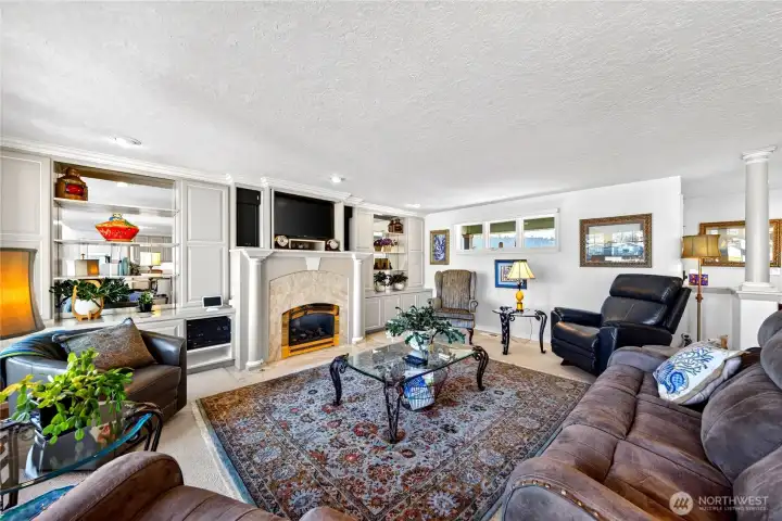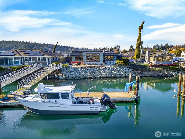 Experience premier waterfront living in the heart of Skyline with this beautiful single-level home offering private moorage and exceptional craftsmanship. With approximately 70+/- feet of low-bank saltwater frontage and a 50+/- foot double-sided private dock, there’s room for your yacht, fishing vessel, and all your waterfront adventures. Designed with an open-concept layout, the home lives effortlessly, blending expansive living spaces with sweeping marina views. Two luxurious primary suites provide flexibility and comfort—one featuring a spa-inspired bath with a steam shower and jetted tub for a true retreat experience. Copper-clad wood windows frame the water views, while copper gutters and downspouts add distinctive architectural detail and long-lasting quality. A generous craft room with custom built-ins offers creative space rarely found in waterfront properties, and a thoughtfully designed office with built-in cabinetry captures beautiful marina views—ideal for working from home without missing a moment of the scenery. Car enthusiasts and travelers will appreciate the attached 2-car garage plus an additional bay sized for a 45+/- motorhome or boat, along with exterior RV parking. All of this is located just about 70 minutes from Seattle. This is Pacific Northwest boating lifestyle at its finest—private dock, protected moorage, and refined one-level living in one extraordinary package!