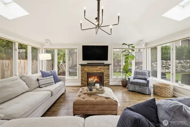 Extensively refreshed and thoughtfully improved, this home offers the updates that matter most for comfort, efficiency, and everyday living. Stay cool during warm Eastside summers with added air conditioning and enjoy year-round peace of mind with a newer furnace. Fresh interior paint creates a bright and cohesive feel throughout. The light-filled family room off the kitchen provides a welcoming space for gathering and everyday connection, while the versatile flex space with built-ins and a fireplace offers a rare opportunity in this neighborhood—ideal as an additional living room, formal dining room, library, or play area. The main floor also includes a private office or bedroom, perfect for working from home or hosting guests. Upstairs features four bedrooms, including a spacious primary retreat with ensuite bathroom. Outside, the backyard has been transformed with low-maintenance turf, a newer fence, and a significant landscaping refresh designed for privacy and easy enjoyment year-round. The spacious garage is elevated with durable epoxy floors and added storage, creating an organized and highly functional extension of the home.Located in the sought-after Hampton Woods neighborhood, residents enjoy evening strolls, pickleball on the community court, time at the neighborhood playground, and convenient access to Sammamish parks, scenic trails, top-rated schools, shopping, dining, and major commuter routes.