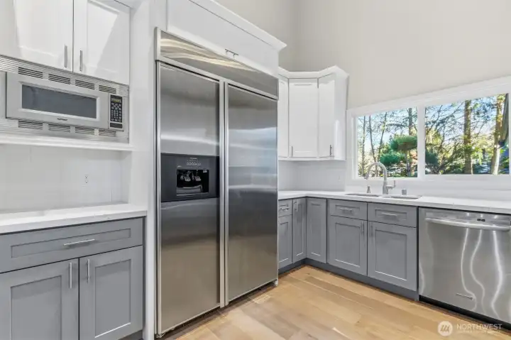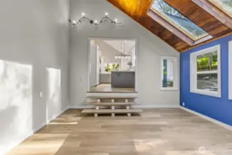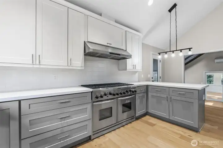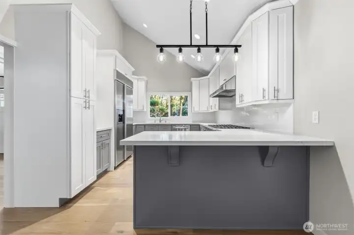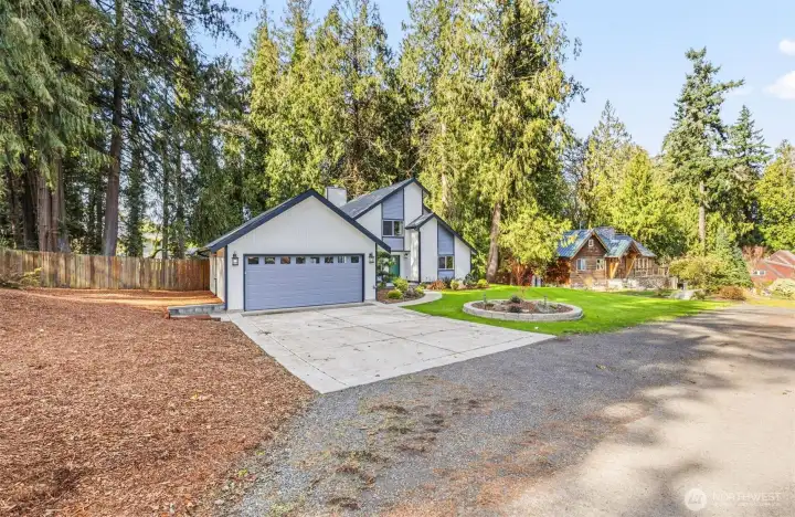 Discover this beautifully remodeled 4-bedroom, 2-bath Northwest Contemporary home, offering 2,810 SF of exceptional design and luxury finishes on just over half an acre. The open, sun-filled floor plan features soaring vaulted ceilings, a dramatic floor-to-ceiling fireplace, recessed lighting, stunning new hardwood floors, fresh interior paint, new doors, trim, and more. The gourmet chef’s kitchen is equipped with top-of-the-line stainless steel appliances, including an 8-burner gas range and a top-mount refrigerator, quartz countertops, modern cabinetry, and a breakfast bar. It seamlessly flows into the dining and family rooms, with sliding doors opening to a wrap-around deck and patio — ideal for entertaining or relaxing outdoors. Enjoy an incredible sunroom surrounded by endless windows, filling the home with natural light year-round. Renovated bathrooms feature new double vanities, quartz counters, and updated tubs with elegant tile surrounds. Additional highlights include a new roof, fresh exterior paint, professional landscaping, a detached 2-car garage with attic storage, and RV parking.