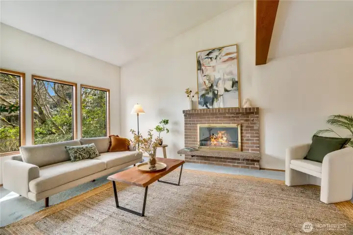 Tucked into a quiet, established UP neighborhood, this stylish classic on a large corner lot is impeccably preserved. Soaring vaulted ceilings and walls of windows flood the home with natural light, creating a bright, airy ambiance that lives beautifully every day. Featuring: Formal living room with fireplace, family room with a cozy gas insert fireplace, dining room and granite kitchen; these spacious and thoughtfully designed areas offer room to gather, entertain, and unwind. Upstairs the large primary suite features a private bath and generous walk-in closet, while the hall bath that serves the other 3 bedrooms has large vanity space and tub for soaking. Step outside to your private backyard retreat with a large deck and mature landscaping: peaceful, secluded, and perfect for summer evenings or quiet mornings. Complete with a laundry room with basin, A/C for temperature highs, newer roof and a double-car garage! Ideally located near world-class golf at Chambers Bay, scenic trails, top-rated UP schools, parks, and everyday favorites like Trader Joe’s and Whole Foods, this home delivers your next set of memories.