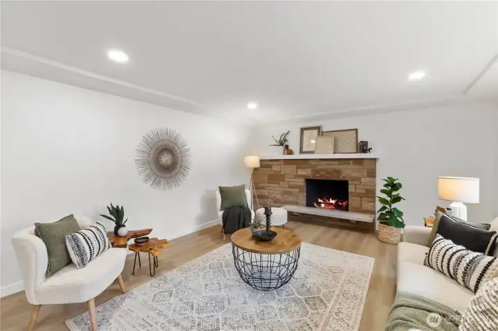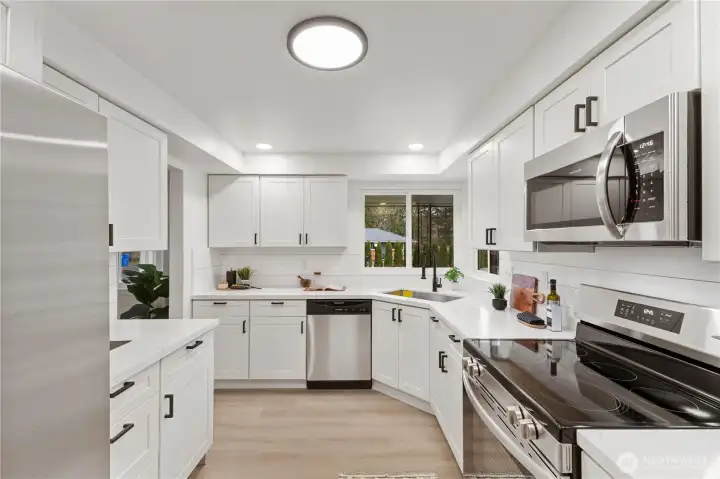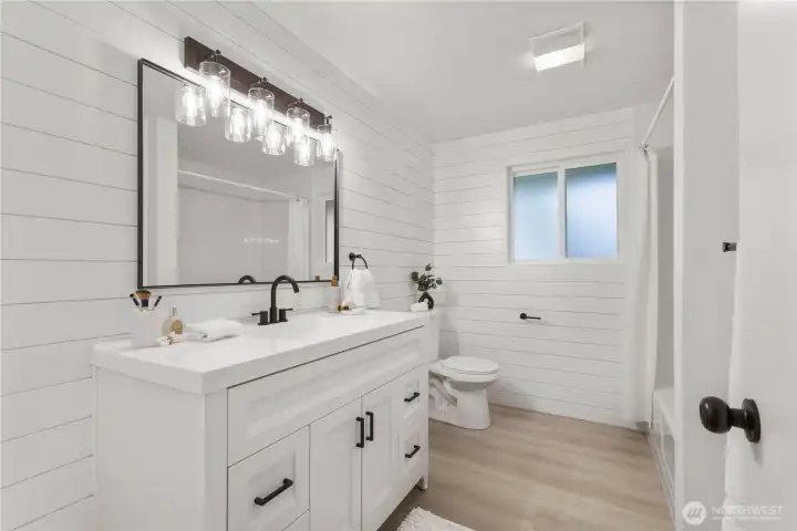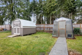 Tucked away on a quiet dead-end road and buffered by peaceful green space, this spacious single-story home offers privacy, flexibility, and room to spread out. The fully fenced backyard features a greenhouse, outbuilding, and plenty of space to garden, play, or entertain including a lovely covered patio. There’s also a massive gravel parking area perfect for RVs, boats, or extra vehicles—plus a two-car attached garage. Step inside to a light-filled interior that has been beautifully refreshed! The brand-new kitchen shines with modern cabinetry, quartz countertops, stainless steel appliances, and a stylish shiplap backsplash. Durable laminate flooring flows seamlessly throughout the home, connecting the generous living room, dining area, and separate family room—ideal for everyday living and hosting. A dedicated utility room and guest half bath add convenience and functionality. The primary bath features a fully tiled shower surround, new fixtures, and updated cabinetry, and shiplap accents for a fresh feel. All 3 bedrooms are spacious with ample closet space and plenty of room for all of accomodations. With new windows, fresh interior and exterior paint, updated lighting, and thoughtful upgrades throughout, this Midland Tacoma home is truly turnkey and ready for its next chapter.