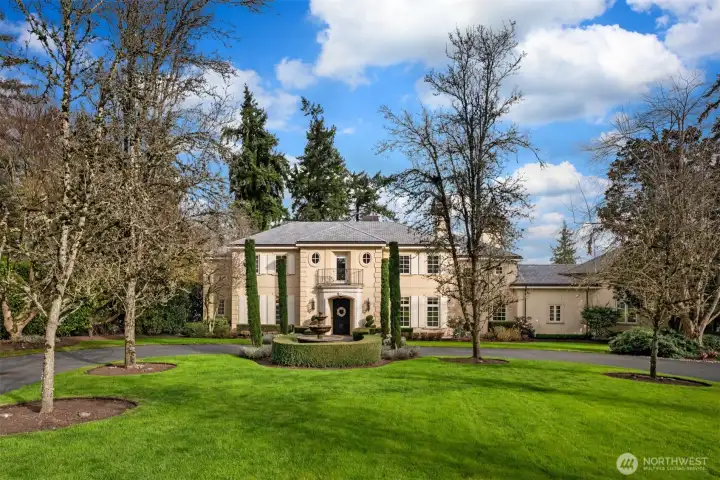 Set behind gates within one of Medina’s most cherished enclaves, this incredibly rare estate overlooks the prestigious Overlake Golf & Country Club and offers an extraordinary blend of privacy, elegance, and resort-style living. Tucked along the fairways in a secure, gated setting, the residence is surrounded by manicured grounds and a curated collection of distinguished estates. A grand arrival unfolds along a sweeping drive to the stately residence, where timeless architecture, refined interiors, and walls of windows capture tranquil golf course views. Expansive living spaces are designed for both sophisticated entertaining & everyday comfort. The grounds evoke a private retreat, complete with a sparkling pool, sport court, and beautifully designed outdoor entertaining spaces. Opportunities to own within this treasured enclave are exceptionally rare, making this an extraordinary offering in one of Medina’s most sought-after and storied communities.