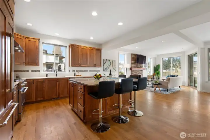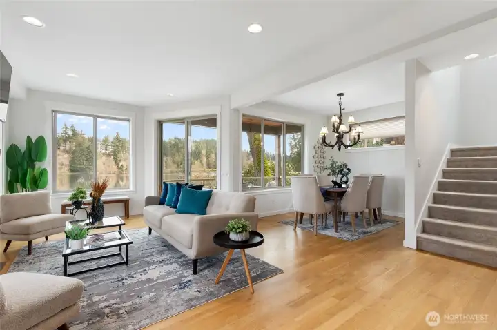 Waterfront Luxury meets Modern Versatility on Lake Boren. Sparkling with fresh updates including fresh interior paint, plush carpet & modern kitchen cabinetry. This beautiful sanctuary offers a rare blend of luxury & flexible living space. The main residence features an expansive open floor plan designed to frame panoramic lake views from every angle. The gourmet kitchen impresses with a quartz eating island, built-in refrigerator & premium JennAir appliances. Retreat to the primary suite with a private balcony overlooking the water, 5-piece spa sanctuary boasting a massive jetted tub, luxe shower, walk-in closet & next to the spacious additional bedrooms & bath. A standout feature is the fully self-contained guest suite located over the 2-car garage. Complete with a finished bedroom, 3/4 bath & its own kitchen, this space is ideal for a high-end home office or a rental opportunity! The lower level adds even more value with a spacious rec room, additional guest bedroom & direct access to a covered patio & your own private dock. Whether you are launching a kayak at sunrise or entertaining in the freshly landscaped yard, this home delivers! Perfectly positioned for an easy commute to Seattle, Bellevue & airport, you are just minutes from local trails, parks, dining & schools. Experience modern lakeside elegance in the heart of Newcastle. Welcome Home.