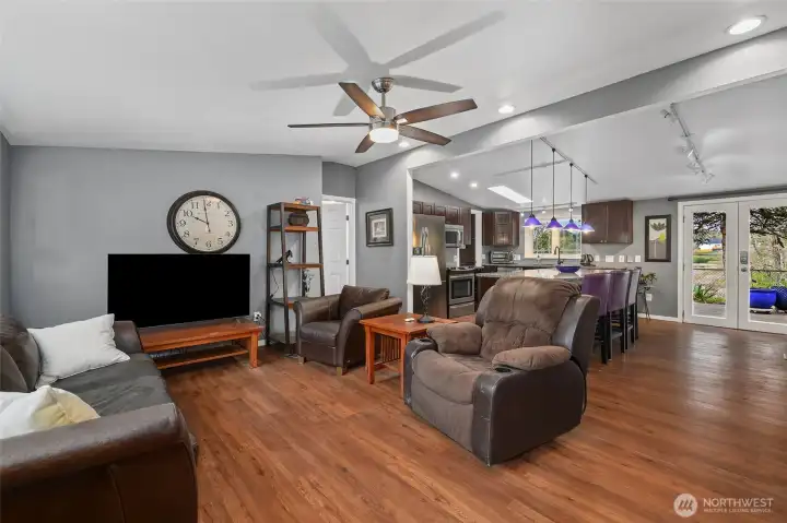 Welcome to this gorgeous updated home with stunning water views in Thunderbird Village, a gated 55+ community. This spacious 2-bedroom, 2-bath home plus large den is perfectly positioned at the end of a quiet cul-de-sac, offering spectacular pond views from the backyard and all rear windows. Thoughtful updates include a beautifully remodeled kitchen, new flooring, French doors, and renovated bathrooms with heated floors. Enjoy year-round comfort with central heating and air conditioning, vaulted ceilings, and an open main area layout. The property features a detached two-car garage, a large front yard with sprinkler system, and peaceful outdoor spaces to relax and enjoy the view. Buyer approval by the community is required. This is a co-op park with the option to purchase a share, reducing monthly rent to approximately $457 (or $838 without share), including water, septic, and basic cable. Community amenities include a clubhouse, organized activities, RV parking, walking trails, and more.