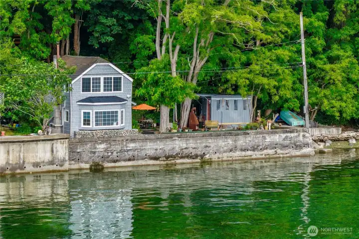 An extraordinary waterfront retreat. Rare no-bank waterfront offering in Normandy Park—one of the last remaining communities in King County where deeded access allows you to drive across the beach to your home from Des Moines Marina Park. Featuring approximately 90’ of Puget Sound shoreline plus deeded tidelands, this private Sound and mountain view property offers iconic sunsets and a truly unmatched coastal lifestyle. Buoy a boat all summer, drop crab pots, explore tide pools, or enjoy daily beach walks while watching local wildlife. This approx. 1,000 sq ft 1-bedroom residence with office is thoughtfully updated with new windows, plumbing, electrical, HVAC, and a reimagined kitchen with quartz countertops, custom cabinetry, double oven, and dishwasher. Updated bath. The inviting living area with electric fireplace adds warmth, while an oversized bay window frames sweeping water views. Enjoy deeded drive-on beach access, a private walk-in trail directly to the home, and a boat storage shed. Walk the shoreline to the Des Moines Saturday Market, Anthony’s, and nearby waterfront dining. A rare opportunity to embrace the adventure, serenity, and exclusivity of true Puget Sound beachfront living.