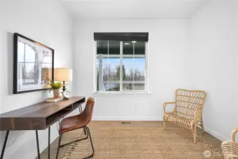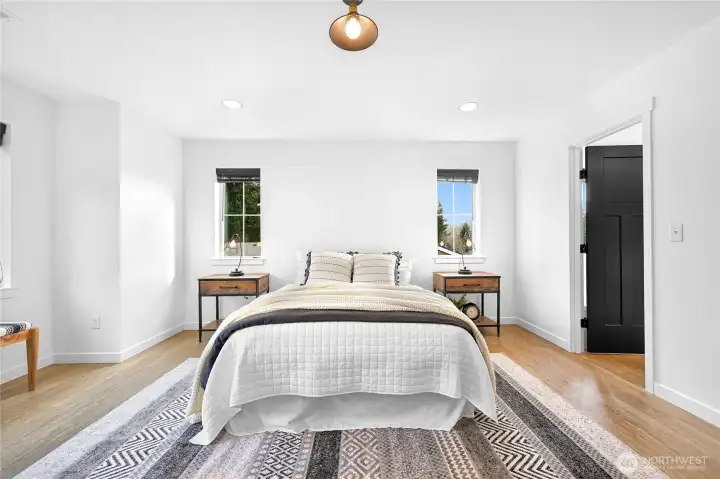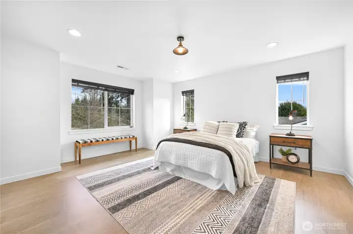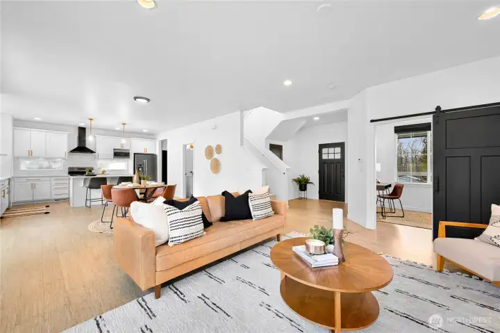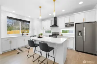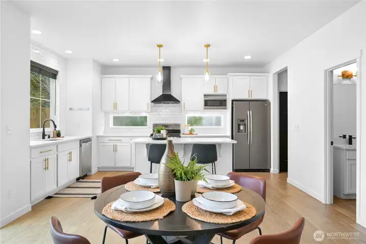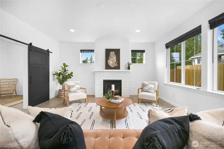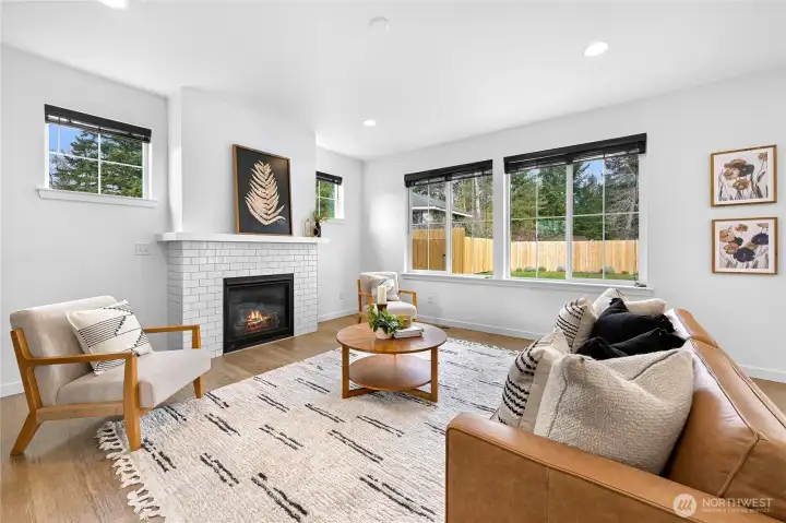 Beautiful, modern home in a central Bellingham location! Turn-key and ready to move in. This spacious 3-bedroom + office, 2.5-bath home offers nearly 2,400 sq ft on a large lot on quiet non-through street. The open floor plan features a bright living room with gas fireplace flowing into the dining area with access to the patio for easy indoor-outdoor living. The kitchen and bathrooms feature white cabinetry and quartz countertops, plus LVP flooring throughout. A large bonus room above the garage provides flexible space for a media room, playroom, or home gym. Enjoy the private, level, fully fenced backyard and quiet neighborhood that backs to Sunset Pond with the new walking trails and nearby park, close to the hospital and shopping, offering a great balance of nature, outdoor recreation and convenience!