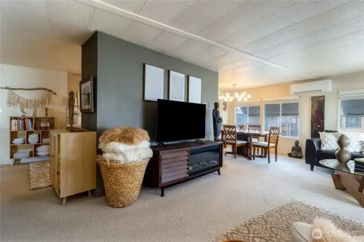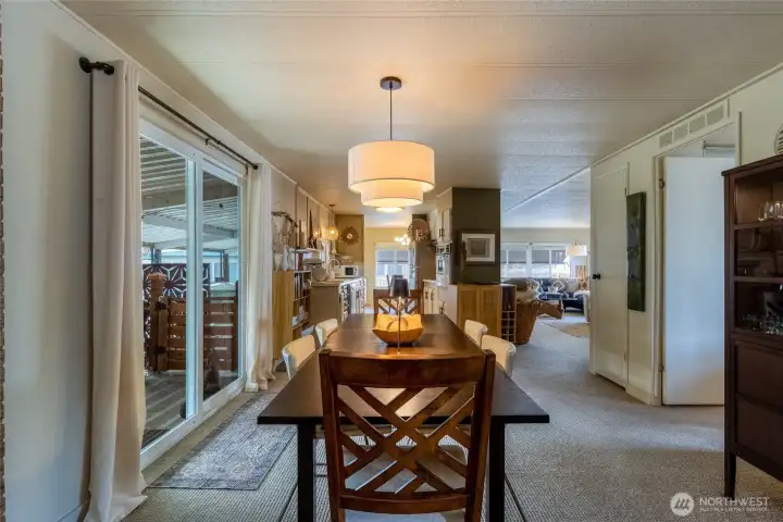 Welcome to this beautifully updated 3-bedroom, 2-bath home situated on a desirable corner lot in the peaceful Rancho Villa community. This inviting home features a spacious & functional floor plan with generously sized rooms throughout. The large living room flows seamlessly into the kitchen & a dedicated/formal dining area—perfect for everyday living and entertaining. Adjacent to the kitchen, is a bright & welcoming space, an ideal setting for casual dining, morning coffee, or a comfortable den. The primary suite offers two closets & a private ensuite bathroom complete with dual sinks & a relaxing soaking tub. 2 additional bedrooms & a second bathroom with a step-in shower. Recent upgrades include: New interior paint throughout, new carpet & baseboards, new appliances, updated light fixtures & ceiling fans, new door handles & cabinet hardware, barn doors added in both bathrooms, window coverings (blinds & curtains), plus drip irrigation system added. Roof was replaced in 2020. BMAC Weatherization process completed for energy efficiency. Enjoy year-round comfort with central heating & A/C, plus new ductless mini-splits. Additional highlights includes, a bonus/storage room, attached carport, & a covered patio for outdoor relaxation. Appliances are included. Enjoy access to a clubhouse, common area, & nearby walking trails. Conveniently located close to shopping & restaurants. This is a no age restriction park. This home is turnkey and ready for you!