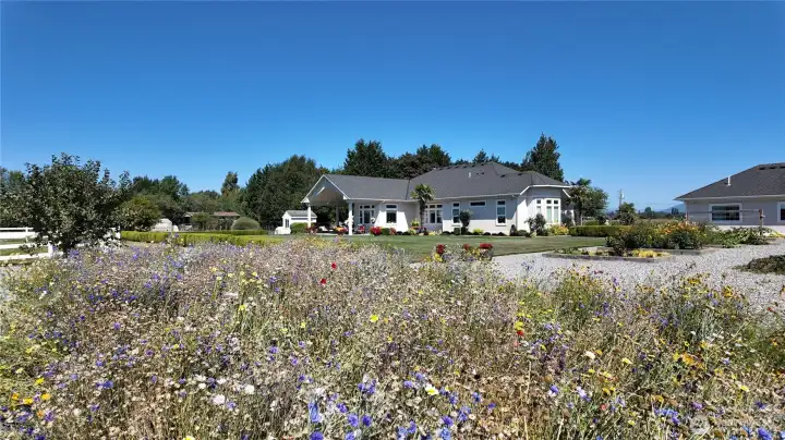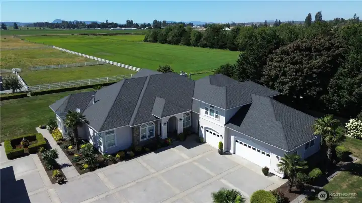 Custom-built home on 8+ scenic acres in Mount Vernon’s Skagit Flats. Designed for accessibility and luxury, all main living areas are located on the ground floor, including a massive primary suite, executive office and junior ensuite suite. The kitchen features premium appliances, granite countertops, double ovens and butler's pantry. Exterior amenities cater to horse and garden enthusiasts with a barn, pasture, greenhouse, and orchard. The property further includes a 3-bedroom ADU and extensive garage space, including a finished detached garage with plumbing.