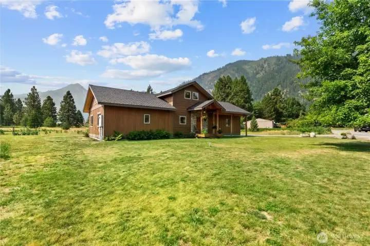 Discover your own private sanctuary near the iconic Icicle River. Perfectly positioned—close enough to enjoy the river’s gentle murmur, yet set back for exceptional peace—this home is framed by open skies, select trees, and sweeping mountain vistas. Inside, soaring ceilings and a dramatic wall of windows showcase breathtaking views of the Enchantments, seamlessly blending indoor comfort with the grandeur of the outdoors. Wake each morning in the primary suite to radiant alpenglow cascading across the peaks. The beautifully appointed kitchen features an expansive island with seating and generous prep space, ideal for both everyday living and inspired entertaining. A versatile loft offers additional sleeping quarters or a flexible retreat for guests. Spend long summer days just steps from the river, then enjoy effortless winters thanks to a heated driveway—an exceptional advantage when snow falls. Whether envisioned as a refined mountain escape or a full-time residence within a welcoming, close-knit community, this cherished home offers an exceptional balance of serenity, beauty, and ease.