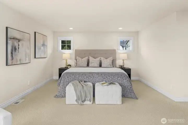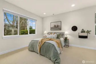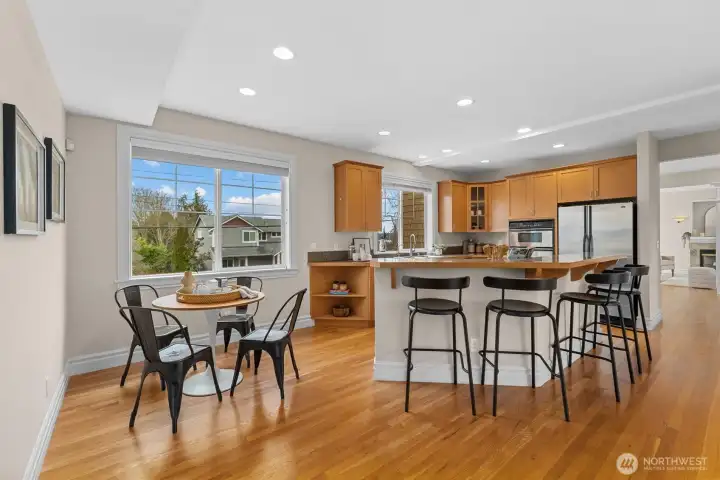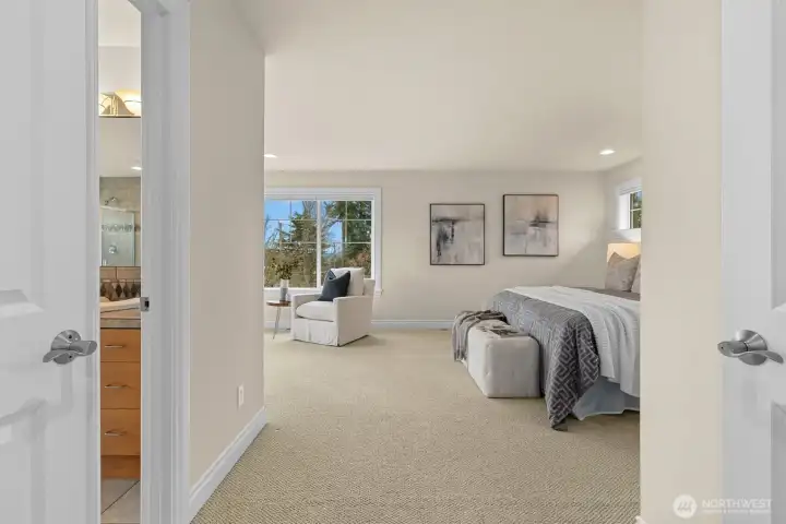 With captivating views of Lake Washington and the Cascades, this Matthews Beach craftsman makes an unforgettable first impression. Set on a peaceful street, the home showcases soaring ceilings and light-filled interiors that celebrate Pacific Northwest beauty. Upstairs, 3 spacious bedrooms include a stunning primary retreat with spa-like bath, walk-in closet, and private sitting area where morning light over the water becomes part of your daily rhythm. The well-appointed kitchen anchors the main floor with generous prep space and seamless flow to gathering areas. Expansive windows frame ever-changing skies, while high ceilings elevate the formal living and dining room into refined yet welcoming spaces. The lower level offers exceptional flexibility with a generous bedroom w/ ensuite bath and private entrance, ideal for guests, home office, or MIL. Outdoors, terraced decks extend the living space, creating a private setting for entertaining or relaxing summer evenings. An oversized 2-car garage w/ storage plus off-street parking for 3+ vehicles ensures everyday ease. Enjoy easy access to the Burke-Gilman Trail and a short stroll to Matthews Beach Park. Minutes to the UW, U Village, DT Seattle, Northgate Station, and the Eastside tech corridor. Meticulously maintained and move-in ready, this rare Matthews Beach view home offers an ideal blend of location, lifestyle, and commuter convenience.