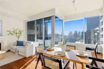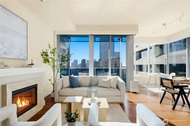 Experience refined urban living at Olive 8, one of downtown Seattle’s premier luxury residences. Located on the 28th floor, this stunning 1-bedroom, 1.5-bathroom residence is defined by an expansive open-concept layout, where soaring floor-to-ceiling windows frame cinematic skyline views and bathe the home in natural light. The gourmet kitchen is a chef’s masterpiece, featuring premium marble countertops, a massive center island, and high-end finishes tailored for effortless entertaining. Retreat to the spacious primary suite, complete with a generous walk-in closet and a spa-inspired 5-piece bathroom featuring a deep-soaking tub and frameless glass shower. Beyond your front door, indulge in world-class amenities including a 24-hour concierge, a professional-grade fitness center, a lap pool, the renowned Elaia Spa, and an expansive outdoor terrace with BBQ stations. Perfectly positioned just steps from premier tech hubs, world-class shopping, and the city’s most celebrated dining, this residence offers an unparalleled lifestyle of luxury and convenience. Recent upgrades include an updated heat pump for efficient heating and cooling, freshly refinished floors, and a newly painted interior that creates a bright and refreshed living space.