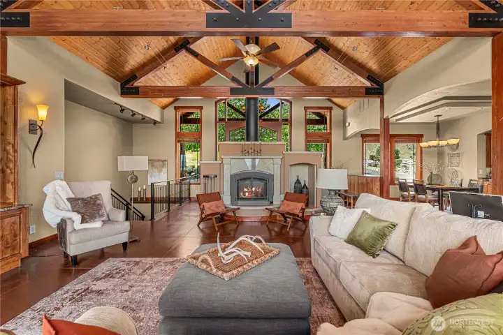 NCW Homebuilder's 2007' Tour of Homes winner! This NW Contemporary will take your breath away with unobstructed views of the Columbia River from every room. Open floor plan w/main floor living designed for comfort and entertaining, featuring heated floors throughout main level, an expansive deck, a chef’s kitchen equipped with Wolf appliances, and cozy propane fireplace. Luxurious primary suite includes a fireplace, auto window coverings,custom walk-in closet and spa-like bath.On opposite end, you’ll find a spacious guest room and 3/4 bath w/granite walk-in shower & soaking tub.Lower level offers heated floors in light-filled family room,theater, 2nd primary suite w/3/4 bath, bdr, 1/2 ba,wine cellar and area for workout/flex space. Step out to private area