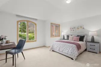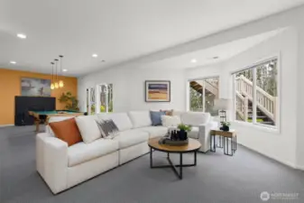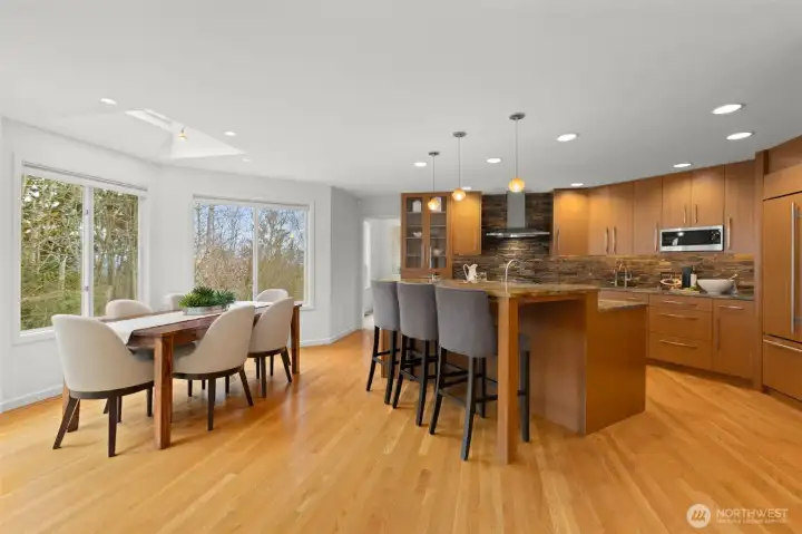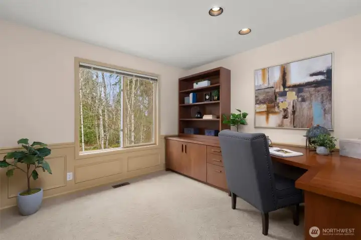 Tucked at the end of a quiet cul-de-sac embraced by towering evergreens, this traditional Northwest Craftsman offers a lifestyle defined by comfort, privacy, and connection to nature. A charming, covered porch welcomes you inside to a grand foyer and dramatic curved staircase, where soaring ceilings and abundant natural light create an immediate sense of warmth. The open kitchen offers the perfect setting for connection, highlighted by warm custom cabinetry, a striking granite island, and stacked stone backsplash, seamlessly flowing into sunlit dining and living spaces framed by walls of glass. Multiple outdoor living areas invite year-round enjoyment, from lively summer dinners on the expansive deck to peaceful evenings in the hot tub unwinding beneath the stars. With a serene primary retreat, two dedicated offices, and a bonus level featuring a sauna and flexible recreation space, every corner of this home was designed to make daily living feel like a private getaway.