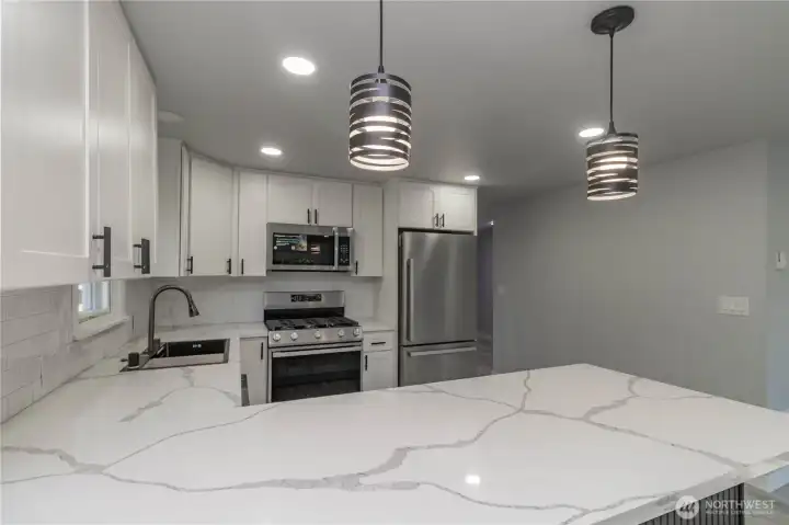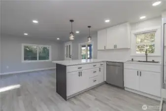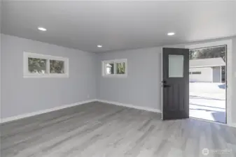 Renovated 2-bedroom, 1-bath home with 810 sq ft on a 9,000+ sq lot in South Seattle. Single-level layout with open-concept living, dining, and kitchen design. Interior features include recessed lighting, LVP flooring, sliding barn-style closet doors, and modern finishes throughout. Kitchen includes stainless steel appliances, island with seating, and updated cabinetry. Major system upgrades include new roof, plumbing, electrical, HVAC. Detached garage plus driveway parking. Fully fenced 9,000+ sq ft level lot offers space for expansion, DADU potential, or additional outdoor use (buyer to verify). Located approximately 1 mi to I-5 access, 2 mi to SR-509 4 mi to Sea-Tac Airport, and 11 mi to Downtown Seattle. Convenient access to regional highways, shopping, and transit corridors.