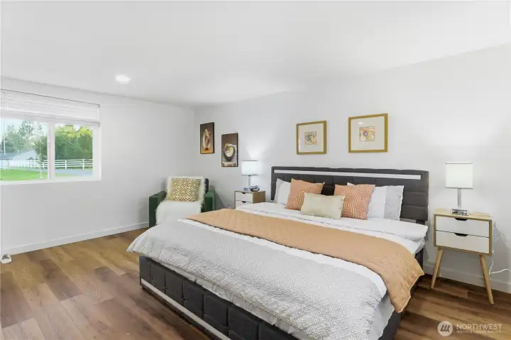 Discover refined country living just minutes from downtown Redmond. Set on over 2.5 private acres with Bear Creek flowing along the back of the property, this beautifully updated farmhouse offers the rare balance of serenity and convenience. The fully fenced pasture with classic white vinyl fencing connects seamlessly to a four-stall barn, creating an exceptional setting for equestrian pursuits or hobby farming. Inside, timeless farmhouse charm meets thoughtful modern updates. The fully finished lower level with a separate exterior entrance offers flexible living options for guests, multi-generational living, or income potential. A detached studio/office with a ¾ bath and an RV pad add versatility to this private retreat—an acreage lifestyle opportunity just moments from Redmond’s shops, dining, and tech corridor.