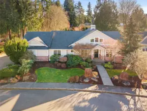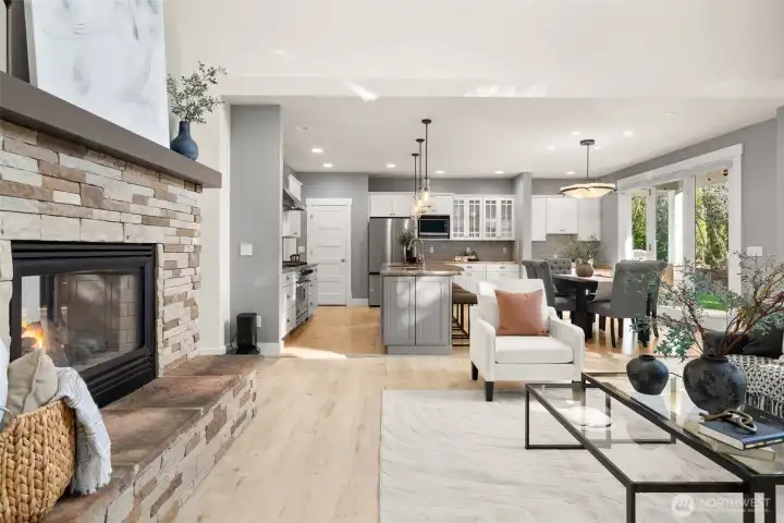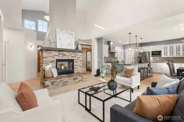 Where refined updates meet effortless living in South Oly. This thoughtfully refreshed home blends modern design with a highly functional one-level layout, complete with an upper bonus room and a 3-car garage. The great room with striking double-sided fireplace & cathedral ceilings flows seamlessly into a spacious kitchen featuring crisp white cabinetry, a contrasting gray island, solid surfaces, a built-in desk area and direct access to the covered patio for effortless indoor/outdoor living. The primary suite is a true retreat, opening to the patio and showcasing a spa-inspired bath with vessel soaking tub, expansive full tile shower and tile flooring. The beautifully updated hall bath features dual sinks, quartz counters, new cabinetry and tile floors. Thoughtfully improved and meticulously prepared for market, the home reflects quality and care throughout. Set on a landscaped .31-acre lot close to schools, parks and amenities, this home offers space, quality and timeless Northwest comfort.