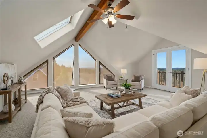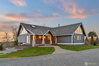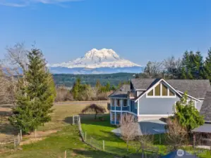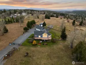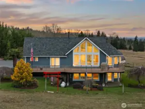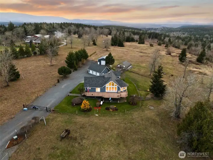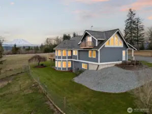 Breathtaking Mount Rainier & Olympic Mountain Views! This stunning custom home sits on 20 private acres within a gated enclave of high-end estates, offering an extraordinary blend of luxury, privacy, and rural tranquility. Spanning 4,039 sq. ft., the thoughtfully designed layout features 3 spacious bedrooms, 3 bathrooms, and a flexible bonus space that could serve as a 4th bedroom, office, or media room. The expansive lower level offers excellent potential for a private MIL suite with separate living space—ideal for multigenerational living or long-term guests. Designed for both comfort and functionality, the property includes a 30’x36’ greenhouse for year-round growing, a 40’x30’ shop perfect for hobbies or equipment storage, and a generous detached 3 car garage with ample space for vehicles and toys. Recent upgrades include a newly installed 40-year roof, central A/C, automatic generator, and irrigation system—providing efficiency and peace of mind. With panoramic views, usable acreage, and endless opportunities to personalize or expand, this is a rare chance to own an exceptional Pacific Northwest estate where luxury living meets wide-open space.