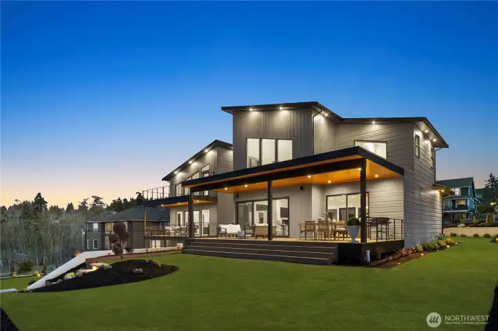 Introducing a once-in-a-lifetime architectural masterpiece in the coveted Adelaide neighborhood of Federal Way. This extraordinary 6,820 sqft custom estate with 5 bedrooms and 5 baths was designed to capture commanding, unobstructed views of the Puget Sound and surrounding mountains through breathtaking walls of floor-to-ceiling glass. A dramatic 5’x8’ pivot entry door welcomes you into soaring 10'+ceilings, a grand floating staircase, European hardwood floors, and 3 custom fireplaces.The chef’s kitchen is nothing short of spectacular, showcasing floor-to-ceiling Tafisa Lumnia cabinetry, stunning Taj Mahal quartzite, Z-Line professional appliances, an oversized statement island, and a fully appointed butler’s pantry. The main-level primary suite is a private sanctuary with its own view deck, spa-caliber 5-piece bath adorned with custom tile, Brassna fixtures, heated floors, and a freestanding soaking tub. 3 bedroom offers en-suite luxury. The lower level is designed for unforgettable entertaining or multi-generational living, featuring a 2nd kitchen, theater or guest suite, and an impressive 10-person steam and sauna retreat. A 950 sqft garage with soaring ceilings, epoxy floors, custom built-ins, and oversized doors elevates the experience even further. Set on a meticulously landscaped half-acre with three expansive view decks and a grand driveway, this residence is the epitome of elegance, craftsmanship, and refined Northwest luxury.