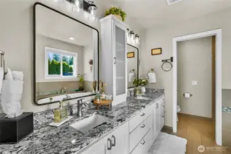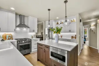 An extraordinary opportunity awaits in the coveted Gold Creek community! Tucked away on a peaceful cul-de-sac, this impeccably updated home shines w/designer style, high-end finishes & a versatile floor plan that truly stands out. From the moment you step inside, you’ll love how the inviting living & dining spaces flow effortlessly into a stunning, fully remodeled chef’s kitchen. Quartz countertops upgraded stainless steel appliances, custom cabinetry, modern fixtures & designer lighting create a space that is as beautiful as it is functional. The center island is perfect for gathering, while the charming garden window adds warmth & character. The spacious primary suite is a true retreat, complete w/a walk-in closet and a beautifully updated spa-inspired en-suite bath. A generous bonus room with engineered hardwood flooring & abundant closet space offers incredible flexibility ideal as a 5 bdrm, media room, game room or home office. Step outside to your own private backyard oasis featuring a covered deck and patio, a large garden shed & full fencing—perfect for entertaining or simply relaxing. Extensive upgrades provide both style & peace of mind, including a 50-year roof, new millwork & wood doors throughout, remodeled bathrooms, elegant iron staircase railing & 2023 AC/heat pump and furnace. Wonderful community amenities including parks, playfields, greenbelt trails & tennis & sport courts. Minutes to Willis Tucker County Park, YMCA, shopping & dining. Highly rated schools.