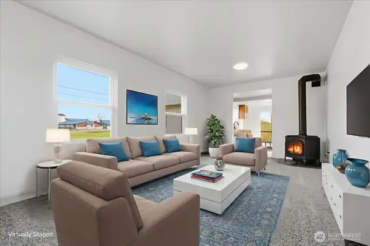 Beautifully remodeled from top to bottom on large private lot. New paint in and out. NEW flooring. Open bright and light living room with wood stove. Updated kitchen features granite tile New stainless stove. Spacious formal dining room. Primary bedroom has walk-in closet. Remodeled bathrooms. Large utility room. Big covered porch for entertaining. Huge 1/4 acre lot with tons of room for parking on dead end road. Easy freeway access. Come take a look!