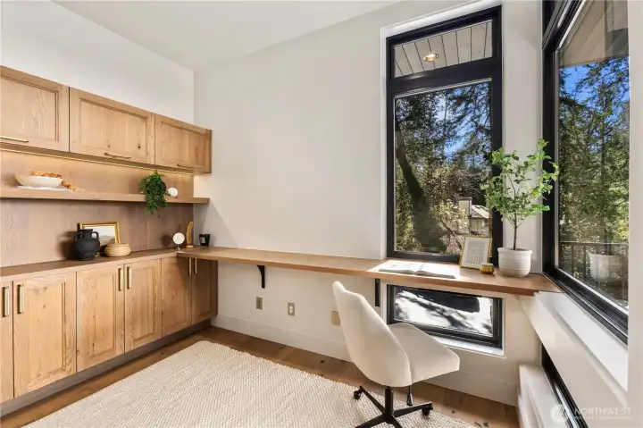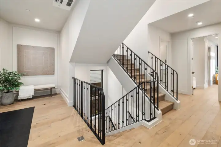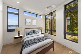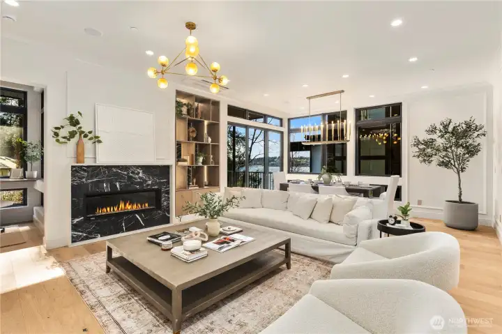 Gracious living w/ spectacular views. A rare opportunity to own new construction in this coveted setting. One of only eight residences in a boutique enclave. Showcasing modern NW architecture w/clean lines & walls of glass, the home reflects meticulous craftsmanship & curated finishes throughout. Expansive windows frame Lk Washington & sky, creating a dramatic backdrop for both everyday living and effortless entertaining. A seamless indoor-outdoor connection, refined design, & immediate access to the Denny Park trail system create a lifestyle defined by privacy, proximity, & architectural distinction in one of Kirkland’s most desirable locations. Two covered veranda decks extend from the living room and primary suite, complemented by an expansive rooftop deck — all oriented West to capture panoramic vistas of Lake Washington and unforgettable sunsets. A welcoming great room anchors the home, seamlessly blending the luxury kitchen, dining, and living areas into one elegant, light-filled space. Luxury at it’s best.