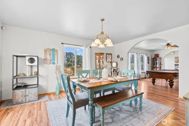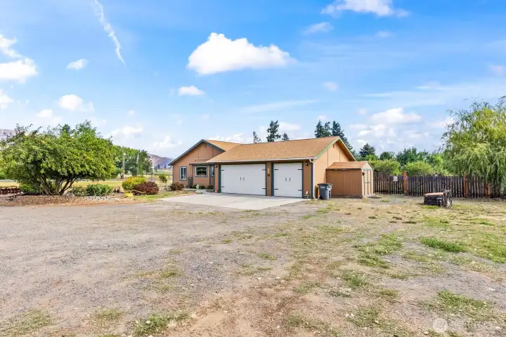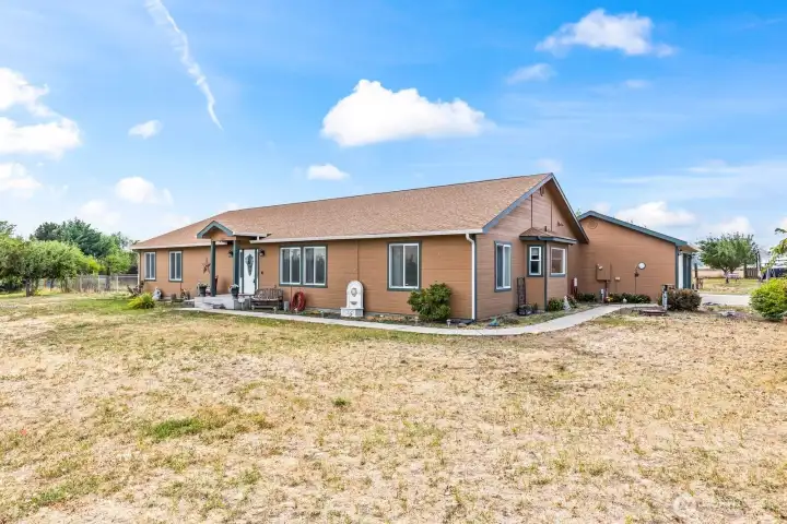 ACCEPTING BACK-UP OFFERS. Hobby Farm Ready! This 2,741 sq. ft. ranch-style home offers an expansive open-concept floorplan designed for both comfort and entertaining. The primary suite features a spacious walk-in closet, while the oversized mudroom adds convenience for busy households. A three-car garage and an insulated shop—with pellet stove option—provide ample space for hobbies, storage, and projects. Modern comforts include a security system, two power panels with room for expansion, and a sprinkler system for easy maintenance. Perfect for equestrian living, the property includes a horse setup with a hay barn, covered stalls, heated waterline for animals, plus additional storage and garden sheds. Outdoor living is just as inviting with a covered back deck, BBQ area, horseshoe pit, and sweeping views at the base of Mt. Clemens. This property blends function and lifestyle with room for all your passions—indoors and out.
