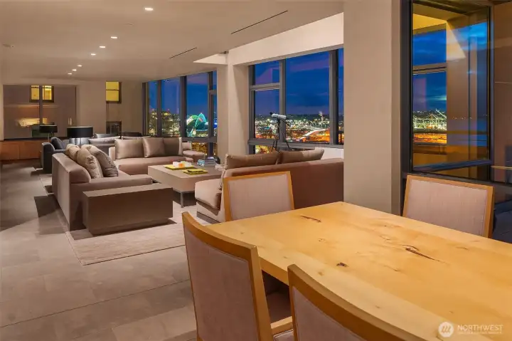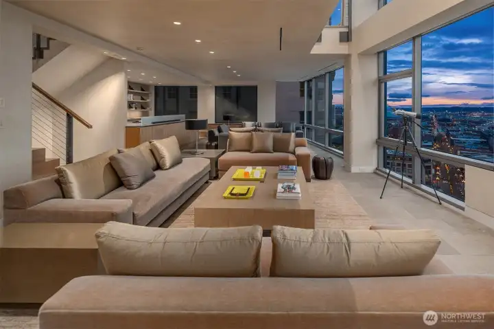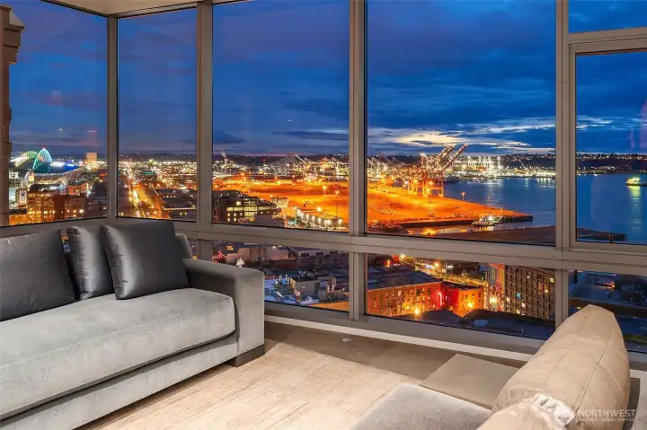 A rare offering within Seattle’s most discreet address, of more than 4,500 sf spans 2 floors with expansive West & Southwest facing water & mtn views. This bespoke residence at Millennium Tower was built to the most rigorous tolerances & only the finest surfaces & materials were considered. The floor plan offers a large open kitchen with a massive slab-stone island, a sunroom w/ custom-built-in banquet & under-counter TV, large wine storage & 2 dishwashers. 3 bdrms, 3 baths, 2 offices, a large mezzanine, media room & a large covered balcony w/ plumbed-in gas. Addl. features include a mechanical room, A/C, Lutron shades & lighting. Offered fully furnished. 3 secure parking & XL storage. On-site manager M-F. Private residential entrance.