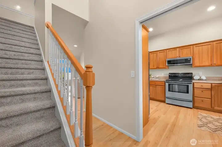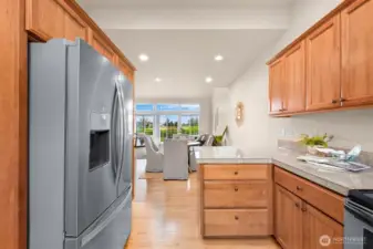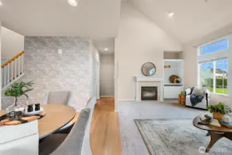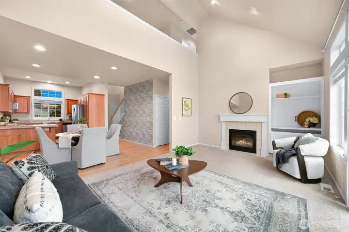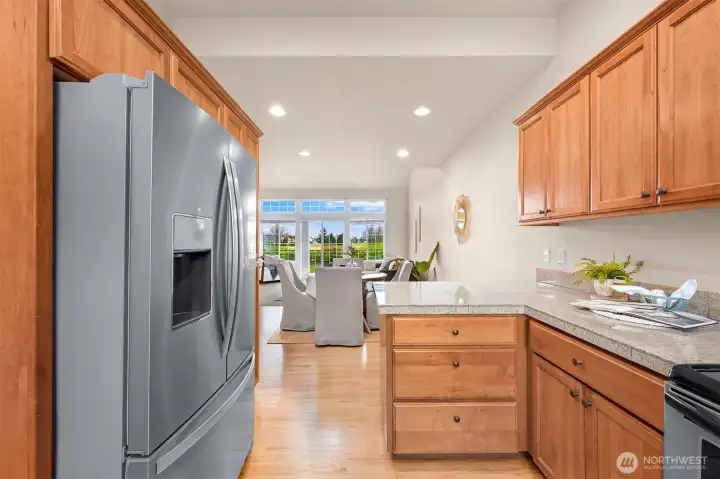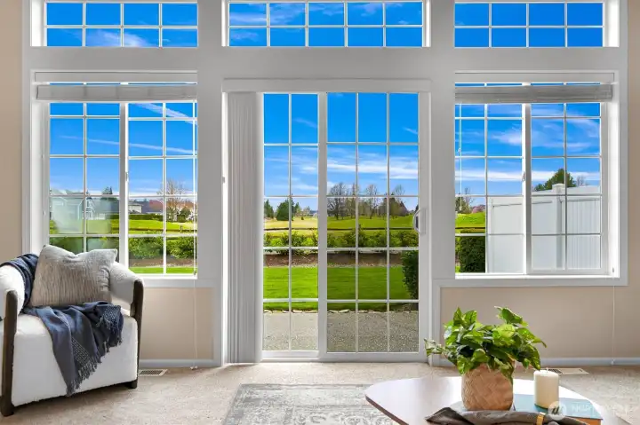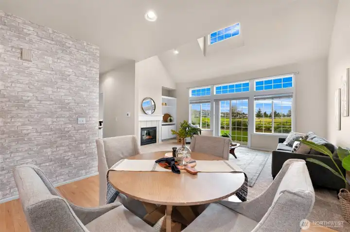If you love living near the golf course but want to avoid the ongoing Homestead HOA issues, this is the one. One of the only homes with golf course views that is completely outside of the Homestead HOA, meaning you enjoy the location without the extra fees or involvement. Beautifully appointed 2-story condo in the heart of Lynden, ideally situated on a quiet cul-de-sac just minutes from charming downtown shops, restaurants, parks, and scenic walking trails. Designed for effortless main-level living, the home features a spacious kitchen with granite countertops, shaker cabinetry, hardwood floors, and seamless flow into the dining area and vaulted ceiling living room. The cozy living room includes a gas fireplace, custom built-ins, and expansive windows that open to a generous west-facing patio, perfect for relaxing evenings and sunset skies. The main floor primary suite offers comfort and privacy with a walk-in closet, soaking tub, and separate walk-in shower. Upstairs, a large open loft overlooks the living area and works perfectly as a home office or reading retreat. The second level also includes a full bath, spacious second bedroom, and a versatile bonus room or den. Additional highlights include air conditioning, a large attached two-car garage, and a well-run condo HOA that covers lawn care and all exterior maintenance. No worrying about roofs, siding, or future exterior repairs. Enjoy low-maintenance living in one of Lynden’s most convenient and desirable locations.