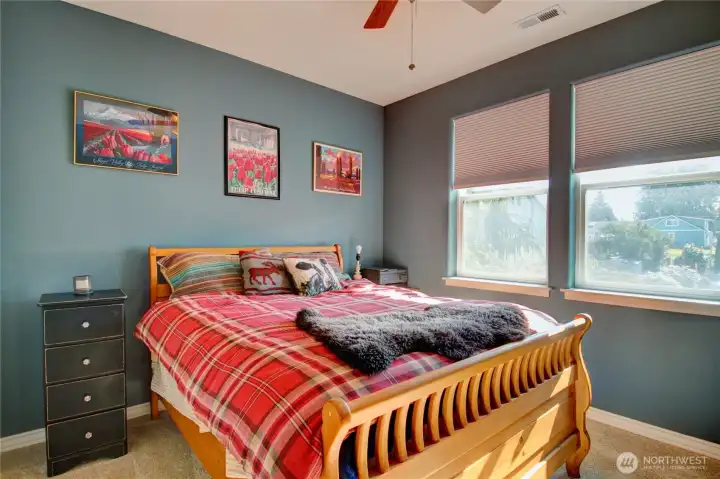This inviting NW Craftsman home welcomes you with an open floorplan, and vaulted ceilings that create a bright, spacious feel. The kitchen features a breakfast bar and a comfortable dining area. Dining has access to a covered deck—perfect for year-round enjoyment and amazing views. The home offers three bedrooms plus a fourth bonus room on main level; and 1.75 baths, including a primary suite with double sinks, a walk-in closet, and a step-in shower. Storage is abundant on both levels. Outside, the property shines with a fully fenced, private backyard, ample parking, and a large 48x26 two-bay shop with 220 amp power and new doors—great for projects; RVs. Amazing garden space and paradise for pet chickens as well. 1/4 acre. Within walking distance of Skagit River Park. Comfort, flexibility, and space—come take a look!